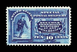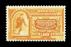 1040 nh E3 image#E3, 10c Orange, an extraordinarily fresh mint single, boasting striking vivid color and a crisp impression on bright paper, quite well centered within large margins, o.g., never hinged, very fine and choice stamp; 2000 PF certificate. (Image) $475.00