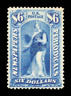 1103 og PR73 image#PR73, $6.00 Blue, a most impressive mint single, with deep luxuriant color and a sharp impression, very well centered, full o.g., lightly hinged, very fine and quite choice; 2001 PF certificate. (Image) $950.00