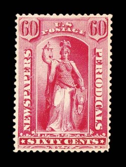 1111 og PR86 image#PR86, 60c Carmine, premium quality mint example of this scarce stamp, marvelously well centered, especially deep and luxuriant color, full o.g., relatively lightly hinged, extremely fine for this; 2002 PF certificate. (Image) $375.00
