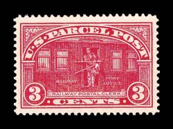 1120 nh Q3 image#Q3, 3c Parcel Post, a fabulous quality mint single that is remarkably well centered within extravagantly large and wonderfully well balanced margins, deep luxuriant color and an unusually sharp impression, o.g., n.h., an extremely fine gem; 1992 PF certificate. (Image) $37.50