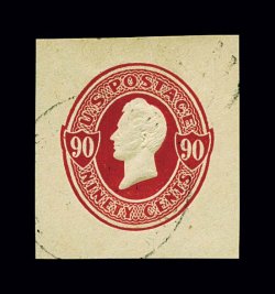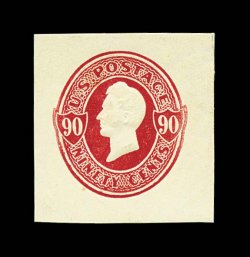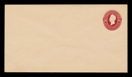 1150 ogc U212 image#U212 90c Carmine on amber, die 70, size 21, knife 98, wmk. 1, pristine large mint entire in the smaller of the two sizes in which this comes, being in immaculate condition, superbly detailed embossing, extremely fine (UPSS #632). (Image) $275.00