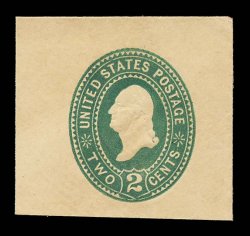 1158 og U309 image#U309, 2c Green on manila, an exceptionally rare mint cut square, being a full corner measuring 42x38mm, strong color on distinctive manila paper, crisp embossing, very fine and choice; this is only the third example of this cut square we have ever offered and this is one of only two full corners we are aware of; 2004 PF certificate. (Image) $17,500.00