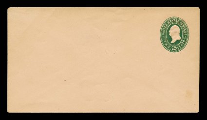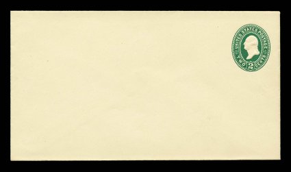 1159 ogc U319 image#U319, 2c Green on amber, die 89, size 13, knife 74, wmk. 7, pristine mint entire, brilliantly fresh and crisp, extremely fine; especially scarce this choice (UPSS #1045). (Image) $275.00