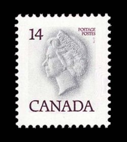 1321 nh 716c image#716c, 1978 14c Queen Elizabeth, with red omitted, the so-called "Black Queen" error, excellent centering, o.g., n.h., extremely fine; a very scarce and striking error (Unitrade C$2,000.00). (Image) $1,200.00