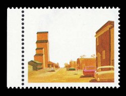 1322 nh 723Ab image#723Ab, 1978 50c Prairie Main Street, brown (engraving) omitted, so-called "Ghost Town" lacking Inscription and denomination, as well as details of the illustration, left sheet-margin single, o.g., n.h., extremely fine and striking; only 150 are known to exist (Unitrade C$3,000.00). (Image) $1,500.00