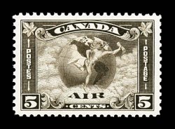 1330 nh C2 image#C2, 1930 5c Olive brown air post, precisely centered within unusually large margins, deep rich color on fresh white paper, pristine o.g., n.h., extremely fine and choice (Unitrade C$200.00). (Image) $65.00