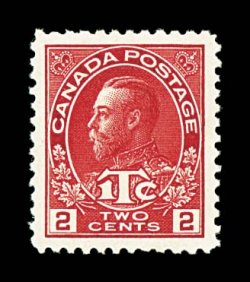 1337 nh MR3a image#MR3a, 1916 2c + 1c Carmine war tax stamp, die II, remarkably well centered within extraordinarily large and perfectly balanced margins, deeply rich color, o.g., n.h., extremely fine; actually a very difficult stamp to find in this gem quality; 1999 PF certificate (Unitrade C$450.00). (Image) $175.00