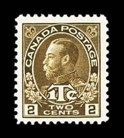 1338 nh MR4a image#MR4a, 1916 2c + 1c Brown war tax stamp, die I, well centered within large margins, deep color, o.g., n.h., very fine; 2001 Greene Foundation certificate (Unitrade C$800.00). (Image) $450.00
