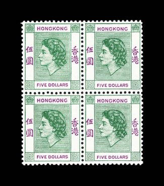1396 nhbl 185-98 image#185-98, 1954-60 5c-$10.00 QEII definitives cplt. in blocks of four, bright colors, o.g., n.h., very fine. (Image) $1,097.00+