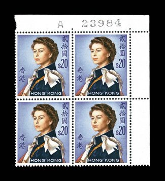 1397 nhbl 203-17 image#203-17, 1962 5c-$20.00 QEII definitives cplt. in blocks of four (top two values are corner margin blocks), o.g., n.h., very fine. (Image) $1,000.00+