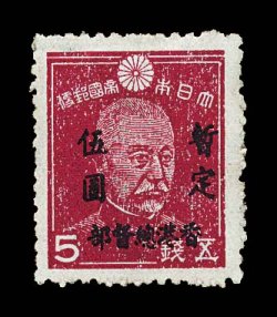 1398 og N1-3 image#N1-3, 1945 1 1/2Y-5Y Japanese occupation surcharges cplt., strong colors, o.g., accompanying certificate inexplicably describes the gum as "disturbed", though the gum is actually quite fresh and clean, fine-very fine; each signed J.R. Hughes and the high value with a 2004 BPA certificate (S.G. #J1-3; £942). (Image) $844.50