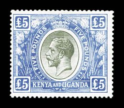 1404 og 41 image#41, 1922 £5 Blue and black, fresh colors on bright white paper, o.g., l.h., accompanying certificate states "rubbed" but in our opinion there is simply a small lightly printed area at top, very fine; 2004 BPA certificate (S.G. #99; £1,700). (Image) $1,800.00
