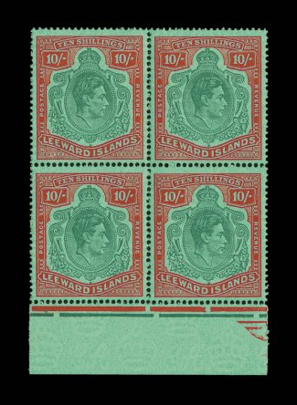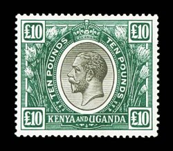 1405 og 41A image#41A, 1922 £10 Green and black, deep rich colors and razor-sharp impressions, wonderfully well centered, full o.g. that the most recent certificate describes as disturbed, however it has just been hinged a few times, an extremely fine and attractive example of this rare stamp; clear 1989 BPA certificate and a 2004 BPA certificate (S.G. #100; £7,500). (Image) $8,000.00