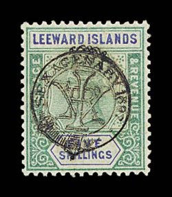 1407 og 16 var. image#16 var., 1897 5/- Jubilee overprint, mint single possessing two full and distinct overprints, with an accompanying 1981 APS certificate stating that is a genuine double overprint (Scott #16a), while a 2004 BPA certificate has opted to call it a "bounced" handstamp, o.g., very fine; cataloged as a normal overprint (S.G. #16 var.; £450+). (Image) $450.00+