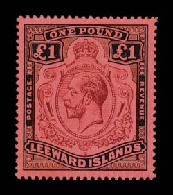 1408 nh 83 image#83, 1928 £1 Black and violet on red, pristine mint single, with deep intense colors, excellent centering, unblemished o.g., n.h., extremely fine; an outstanding quality example of this high value (S.G. #80; for hinged £225). (Image) for hinged $225.00