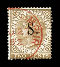 1421 O 3 image#3, 1882 2c Brown with "S." overprint, used, fresh color, red c.d.s. postmark, two perf. tips at bottom left have been added to improve the appearance, still a fine and attractive example of this very rare stamp; 1991 BPA certificate (S.G. #8; £2,500). (Image) $2,750.00