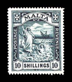 1424 og 65 image#65, 1919 10/- Black St. Paul, an especially fresh and choice mint example of this popular 20th century rarity, with intensely rich color and a razor-sharp impression on bright white paper, exceedingly well centered, o.g., lightly hinged, extremely fine (S.G. #96: £3,250). (Image) $3,500.00
