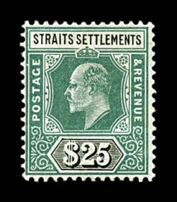 1483 og 128A image#128A, 1904 $25.00 Green and black, well centered for this, strong colors, o.g., light horizontal crease, certificate states "a little soiled" but we have no idea where, very fine appearance; signed A. Diena and accompanied by a 2004 BPA certificate (S.G. #139; £1,400). (Image) $1,600.00