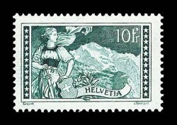 1485 nh 185 image#185, 1930 10Fr Gray green, pristine mint single, exceptionally well centered, deep strong color, o.g., n.h., extremely fine (Michel #228; €550). (Image) for hinged $200.00+