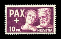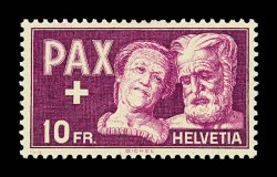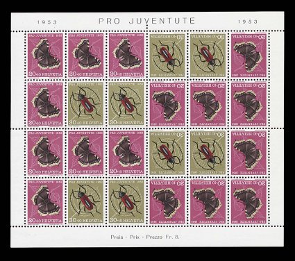 1489 nhbl B229a image#B229a, 1953 Pro Juventute se-tenant miniature sheet of 20, consisting the 20c+10c and 30c+10c values, used for booklets, o.g., n.h, extremely fine. (Image) $375.00