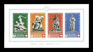 1488 nh B105 image#B105, 1940 National Fete Day souvenir sheet of four, fresh, o.g., n.h., very fine (Michel Block 5; €450). (Image) $425.00
