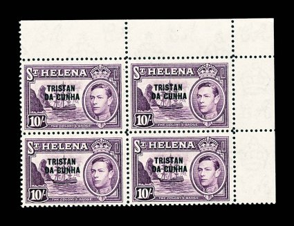 1491 nhbl 1-12 image#1-12, 1951 1/2p to 10/- King George VI definitives cplt. in matched top right corner margin blocks of four, o.g., n.h., very fine (S.G. #1-12; £360+). (Image) $455.80+