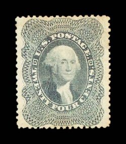 168 ng 37a image#37a, 24c Gray, unused, marvelously well centered with virtually clear margins all around, strong color and impression, light paper aging, otherwise extremely fine. (Image) $650.00