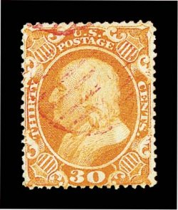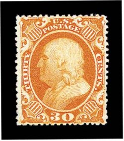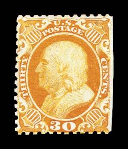 169 ng 38 image#38, 30c Orange, brilliantly fresh and choice unused example, possessing far better centering and much larger margins than typically encountered on this tightly spaced stamp, gloriously rich color in a deep shade, plus its impression is unusually strong, extremely fine; 1995 PSE certificate. (Image) $850.00