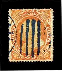 167 O 37 image#37, 24c Gray lilac, attractive used single, sporting a central blue Baltimore c.d.s. and nearly a full strike of red numeral "19" accounting handstamp, exceptionally well centered, strong gray lilac color and a detailed impression, extremely fine and an eye-catching stamp; 1997 PF certificate. (Image) $450.00