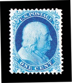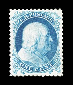 177 og 40 image#40, 1c Bright blue reprint, without gum as issued, flawlessly centered, bright rich color on especially fresh paper, extremely fine and quite choice; 1986 PF certificate. (Image) $625.00