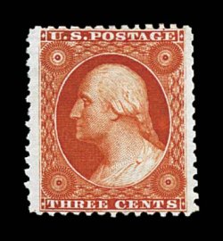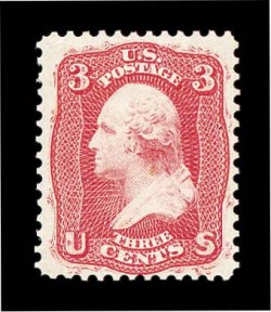 178 og 41 image#41, 3c Scarlet reprint, without gum as issued, virtually perfectly centered top to bottom and side to side, with the side margins being especially wide, radiant color and a prooflike impression on brilliantly white paper, extremely fine; a premium example of this rare reprint, of which only 479 were issued; 1991 PF certificate; ex-"Southern Cross", Hinrichs. (Image) 3,250.00