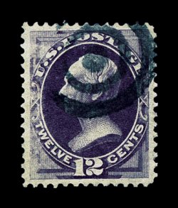 15 O 140 image#140, 12c Dull violet with grill, the used example offered here is, in all likelihood, the finest quality used Twelve Cent Grilled Bank Note in existence, as this magnificent stamp possesses every physical attribute that is typically lacking on other known examples, including being absolutely perfectly centered amid enormously large margins which are terribly uncharacteristic of this series in general and of this value in particular, its color is incredibly deep and rich (not the pale shade so often seen), and its perforations all around are uniformly intact and long, all beautifully postmarked with a desirable and neat target cancel that complements its overall eye appeal, the only example we have ever seen worthy of the lofty grade of superb; while a few attractive #140's have surfaced on the market in recent years, none comes close to the phenomenal quality that this wonderful stamp enjoys; 1971 PF certificate as a pair, and 1986 and 2001 PF certificates as a single; ex-Sheriff, Hinrichs. (Image) $3,000.00