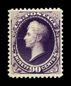 16 nh 218 image#218, 90c Purple, a superlative mint single in the most pristine state imaginable, possessing gorgeous rich color and a razor-sharp impression on immaculate paper, incredibly well centered within large margins, even its perforations are unusually full and intact, unblemished o.g. without a single gum bend or skip, never hinged, extremely fine; a "post office" fresh gem for the perfectionist. (Image) $3,250.00