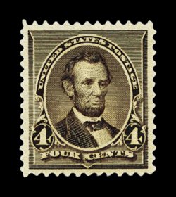 20 nh 222 image#222, 4c Dark brown, extraordinarily well centered within uncharacteristically wide margins, strong prooflike color and impression on immaculate paper, o.g., n.h., extremely fine gem; actually a terribly challenging value to find in this premium condition; 2001 PF certificate. (Image) $290.00
