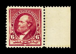 21 nh 224 image#224, 6c Brown red, an absolutely breathtaking jumbo-margined right sheet-margin mint single, possessing gigantic margins that are unheard of on the Small Bank Note issues, precisely centered within these massive borders, deep luxuriant color, pristine o.g., n.h., extremely fine; an incomparable gem; 1999 PSE certificate. (Image) $225.00