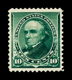 23 nh 226 image#226, 10c Green, a magnificent quality mint example of this surprisingly difficult value to find in true premium never hinged condition, with this particular stamp boasting extravagantly large and incredibly well balanced margins all around, just as impressive is this stamp's overall brilliance and freshness, with prooflike color and impression on immaculate paper, unblemished o.g., n.h., extremely fine gem; one of the finest Ten Cent 1890 Small Bank Notes we have ever seen offered at auction; 2001 PSE certificate. (Image) $550.00