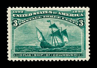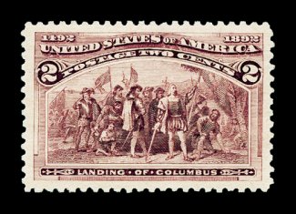 27 nh 231 image#231, 2c Columbian, a most impressive mint example in a quality surpassed by very few others, boasting extravagantly large margins all around and being remarkably well centered within them, plus its color is an attractive bright shade on fresh paper, pristine o.g., n.h., extremely fine and exceedingly handsome; 2002 PSE certificate. (Image) $47.50