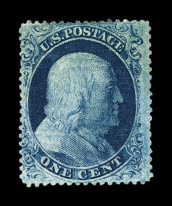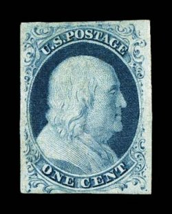 1008 og 7 image#7, 1c Blue, Ty. II, extraordinarily well margined all around, with much larger margins than typically encountered, deep rich color and strong impression, full o.g., very faint trace of light soiling, still an extremely fine example of this elusive mint stamp; 1986 PF certificate. (Image) $1,200.00