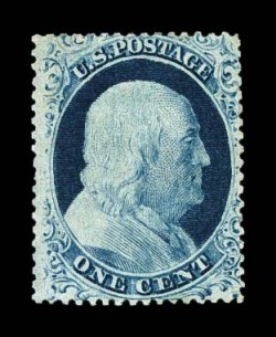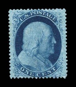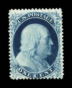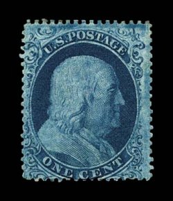 1016 og 22 image#22, 1c Blue, Ty. IIIa, a seldom offered mint example of this scarce type, possessing an uncommon overall freshness and crispness, rich luxuriant color and a deeply etched impression on bright paper, very well centered, especially when compared to most other existing mint copies, even its full o.g. is unusually clean and fresh, lightly hinged, very fine; choice original gum examples of the perforated One Cent Type IIIa are terribly challenging to find; 1987 PF certificate. (Image) $2,500.00