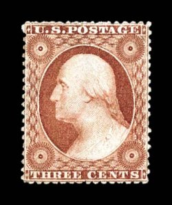 1020 og 26 image#26, 3c Dull red, Ty. II, pristine mint single, deep luxuriant color, quite well centered amid extraordinarily wide margins which are most uncharacteristic, immaculate o.g., just the barest suggestion of a hinge mark, extremely fine. (Image) $75.00
