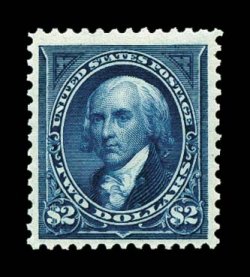 1198 nh 277 image#277, $2.00 Bright blue, a marvelous mint example of this scarce value, possessing an incredible overall freshness and crispness that is almost never encountered, strikingly rich color and an excellent clarity of impression on brilliantly white paper, marvelously well centered amid considerably larger margins than normally encountered, immaculate o.g. without a single gum bend or skip, never hinged, a very fine and choice never hinged example of the Two Dollar Watermarked Bureau issue; 1987 and 2001 PF certificates. (Image) $3,000.00