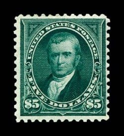 1199 og 278 image#278, $5.00 Dark green, fresh mint example, deep luxuriant color and a strong detailed impression, fairly well centered, o.g., lightly hinged, nearly very fine. (Image) $2,300.00