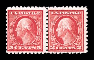 1301 nh 467 image#467, 5c Carmine error, single error in a horizontal pair with a normal 2c stamp, quite fresh, bright color, o.g., n.h., fine. (Image) $1,000.00+