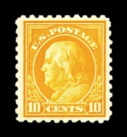 1304 nh 472 image#472, 10c Orange yellow, intensely rich color and impression, well centered within unusually large margins, o.g., n.h., extremely fine; 2000 PSE certificate. (Image) $240.00