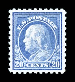 1307 nh 476 image#476, 20c Light ultramarine, premium mint single, marvelously well centered within large margins, bright color, immaculate o.g., n.h., extremely fine; quite elusive in this choice never hinged condition; 1999 PF certificate for a block of four, this being the bottom right stamp, plus a 2000 PF certificate as a single. (Image) $550.00