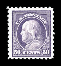 1309 nh 477 image#477, 50c Light violet, a marvelous "post office" fresh mint example of this elusive value, possessing a remarkable overall brilliance not often encountered, with bright vibrant color and a strong prooflike impression on immaculately white paper, nicely centered within unusually wide margins, pristine o.g., never hinged, very fine and exceptionally choice; a very scarce stamp to find both never hinged and in premium condition; 1989 PF certificate. (Image) $2,400.00