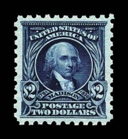 1311 nh 479 image#479, $2.00 Dark blue, highly select mint example, perfectly centered within large margins, prooflike color and impression, unblemished o.g., n.h., extremely fine; while nice copies of Scott #479 are offered at auction with some regularity, few are as choice as the example offered here; 1998 PF certificate. (Image) $550.00