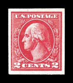1319 og 534B image#534B, 2c Carmine offset imperforate, Ty. VII, four large and exceptionally well balanced margins, deep rich color, o.g., lightly hinged, couple of natural inclusion specks not mentioned on accompanying certificate, a very fine example of this truly rare stamp; 1991 PSE certificate. (Image) $2,100.00