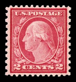 1320 nh 539 image#539, 2c Carmine rose coil waste, Ty. II, perf. 11x10, a brilliant "post office" fresh mint example of this very rare and challenging stamp to find in such premium condition, possessing an outstanding overall freshness, rich luxuriant color and a razor-sharp impression on immaculate paper, extraordinarily well centered within much larger margins than typically encountered, pristine o.g., never hinged, extremely fine; easily ranking among the finest of the scant few never hinged Scott #539's in existence; 1994 PF certificate. (Image) $4,000.00