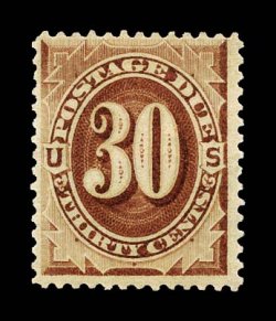 1347 nh J6 image#J6, 30c Brown, unusually bright and fresh, deep rich color and impression, attractively centered, full unblemished o.g., never hinged, nearly very fine. (Image) for hinged $375.00